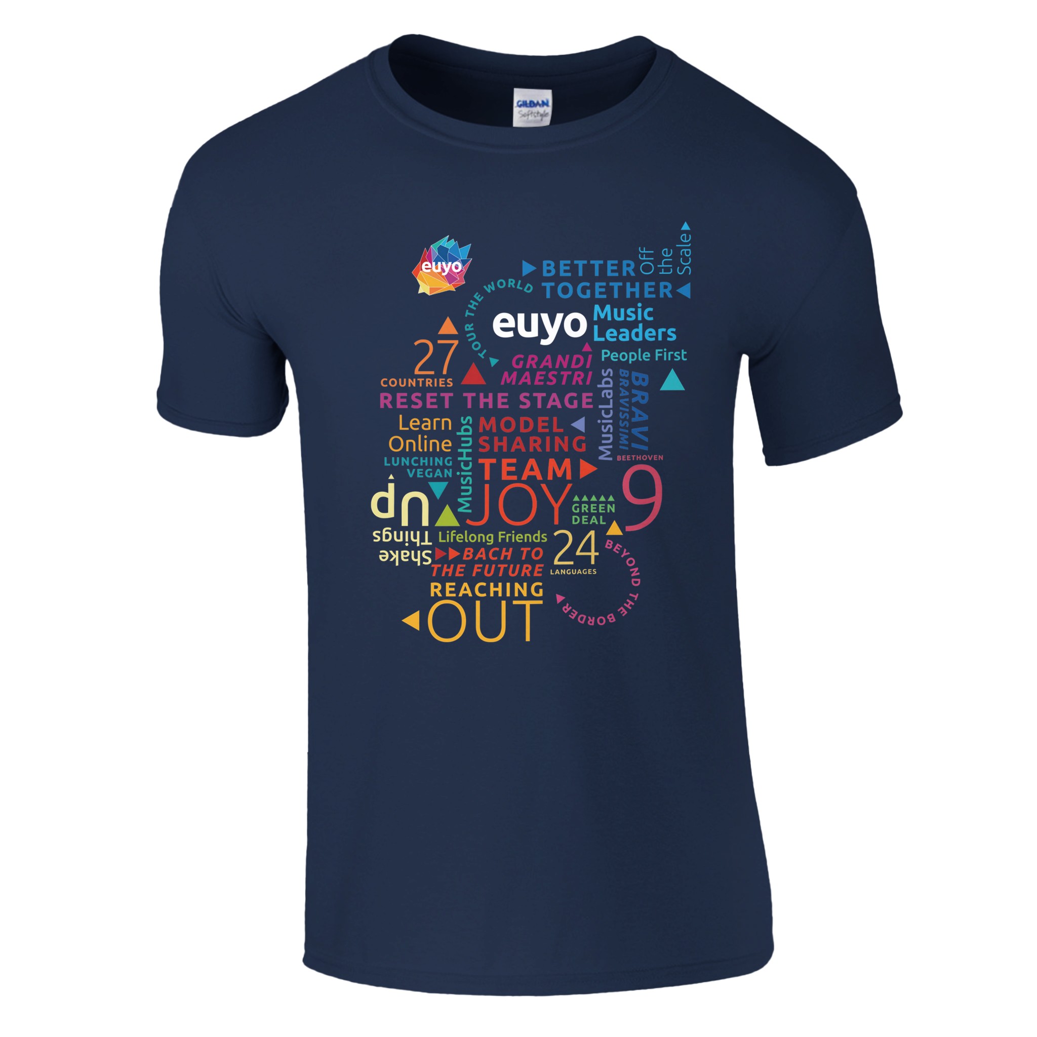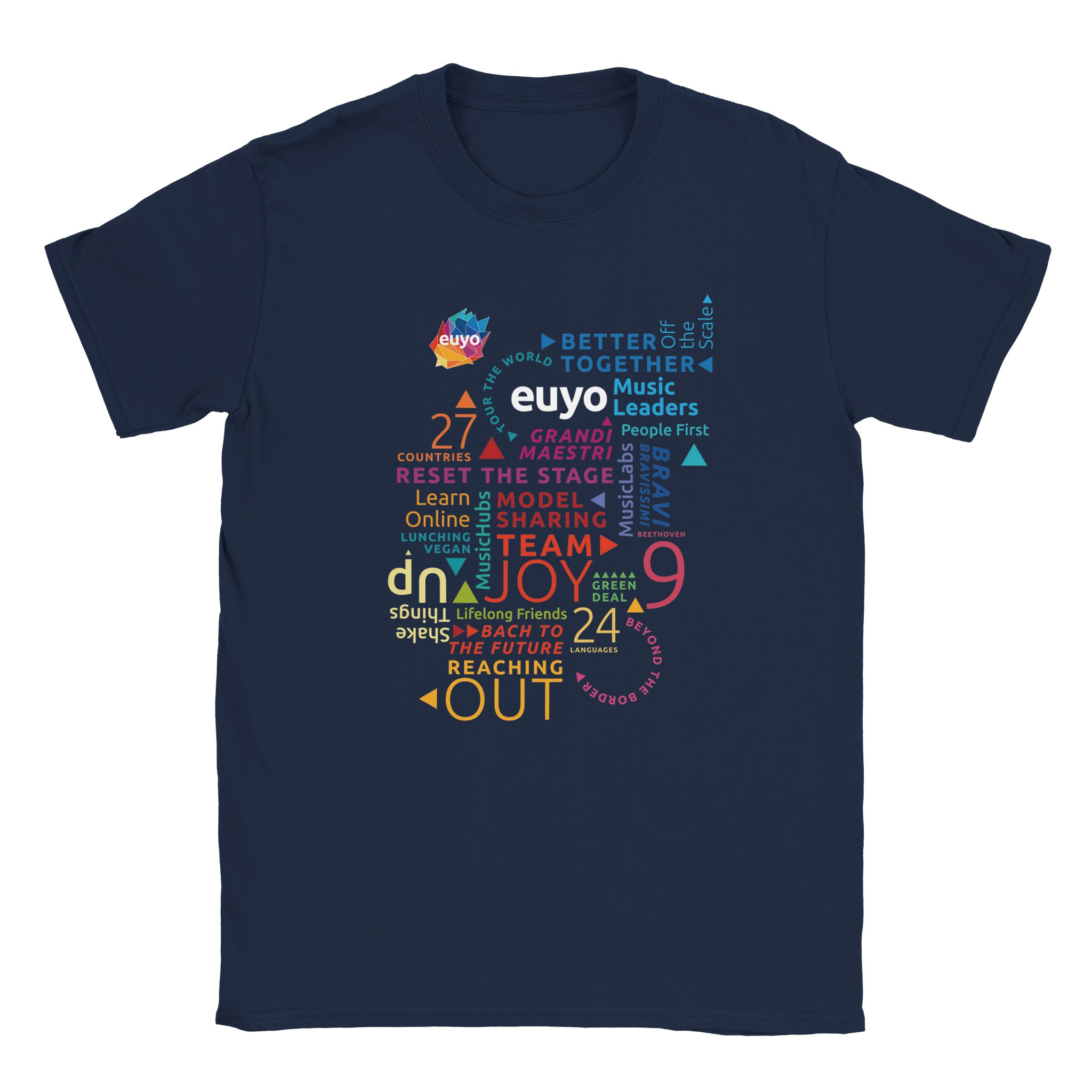 Lightweight, medium-fit unisex T-shirt in 100% lightweight cotton and EUYO word cloud on the front.Â